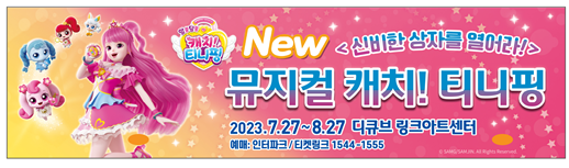 뮤지컬 캐치 티니핑 이 2023년 7월 27일부터~8월27일가지 한달간 공연합니다. 신도림 디큐브시티 7층 디큐브 링크아트센터 에서 공연 하며, 인터파크에서 티켓을 구매 하시면 되겠습니다.