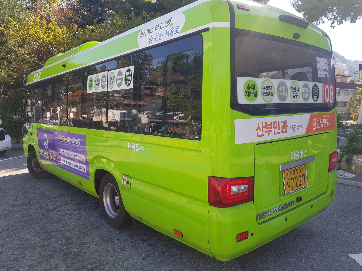 마을버스에 부착한 모습은 다음과 같습니다.